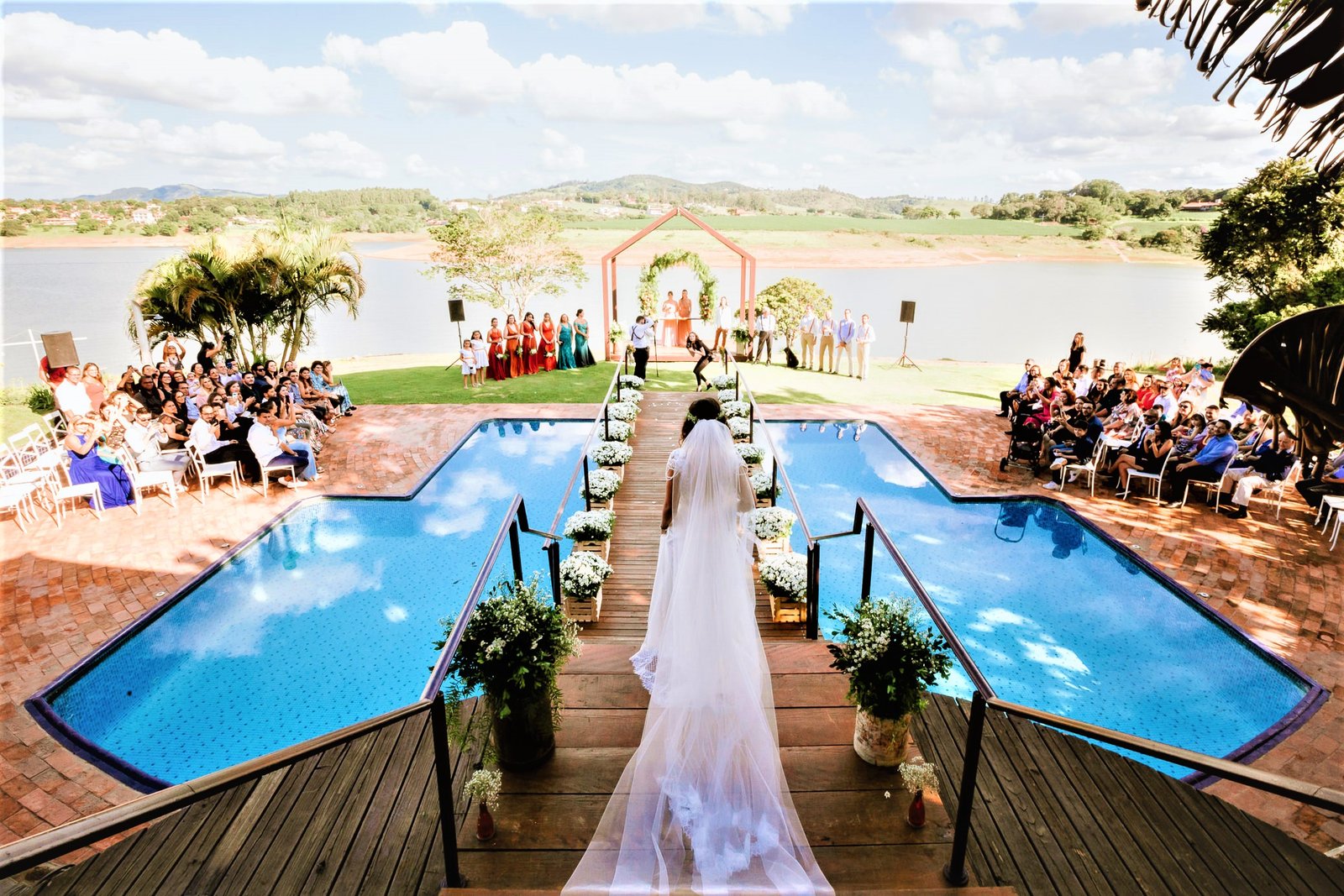 Imagine você atravessando por uma passarela por cima de uma piscina e dizendo o famoso SIM em uma capela que parece flutuar por cima das águas da represa? Sim, aqui isso é possível.